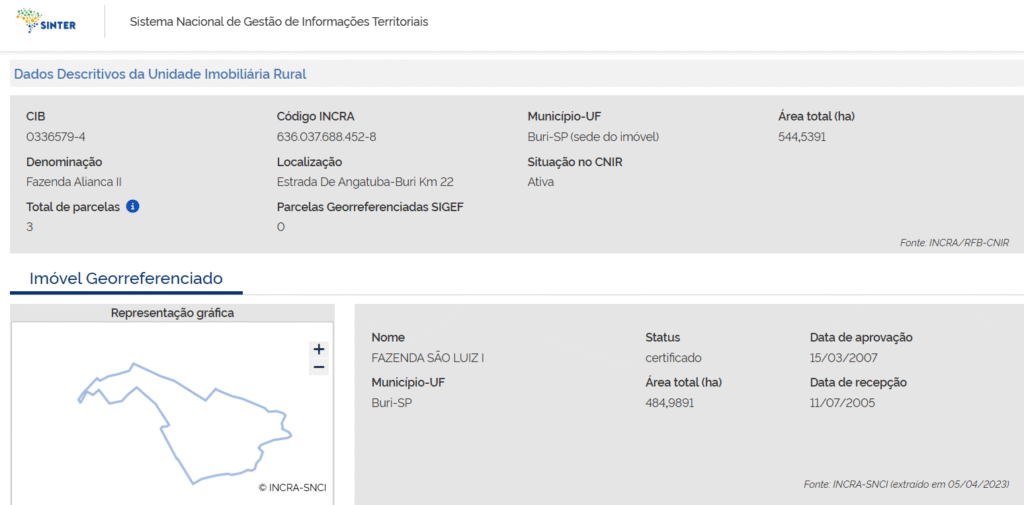 Veja um exemplo de consulta de imóvel no SINTER, com a indicação do CIB: